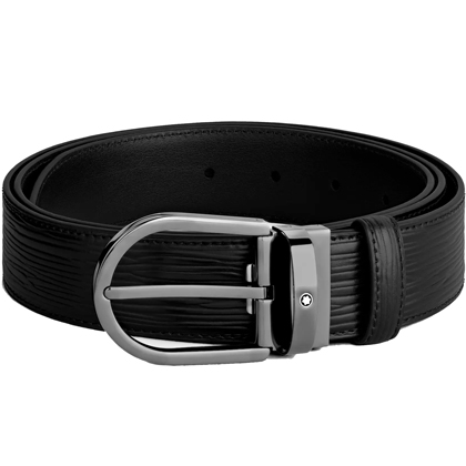 Черный кожаный ремень с подковообразной пряжкой 35мм от магазина премиальных ручек Premium Pens в Бийске.